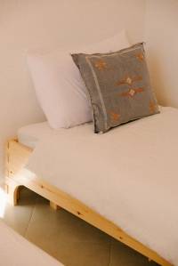 Tucked away in a quiet corner of town, The Horizon blends warm Moroccan colours, handmade details, and a welcoming atmosphere. It has one of the best rooftops in Tamraght: the perfect place to watch the sunset after a day of surfing, stretch in our evening yoga practice, or sip mint tea under the stars.